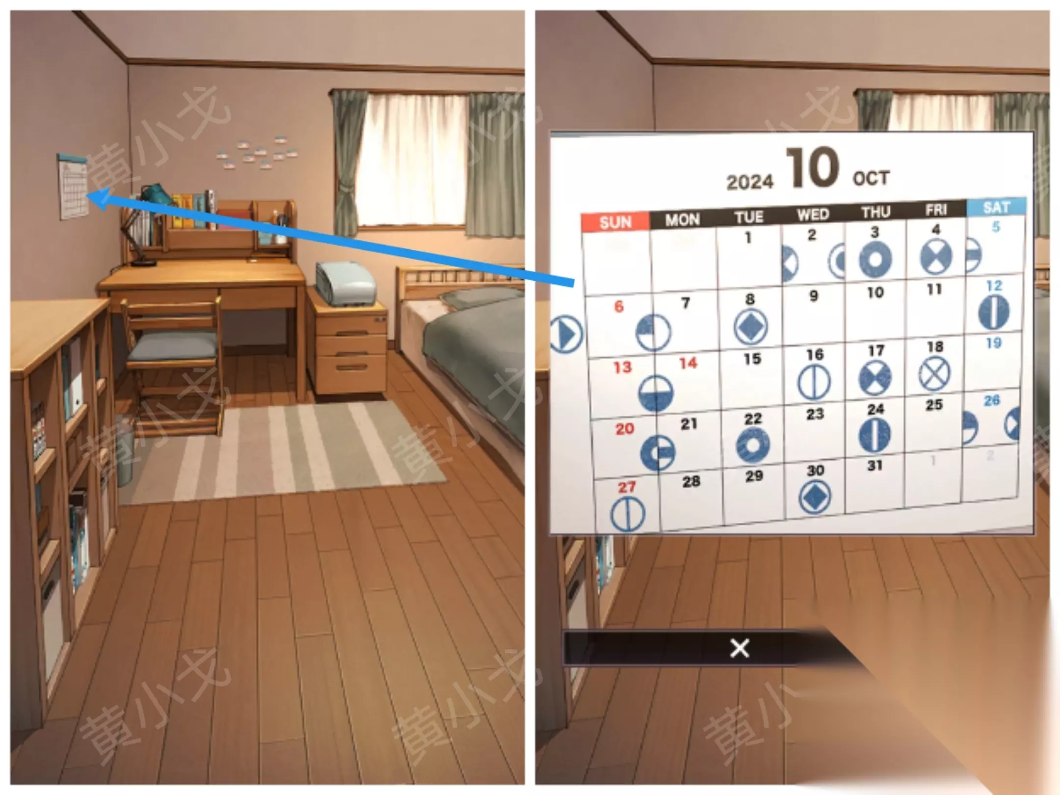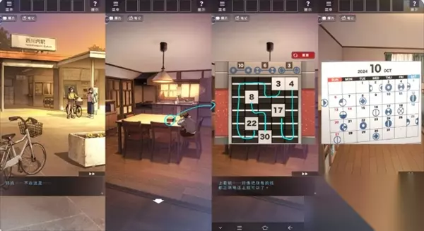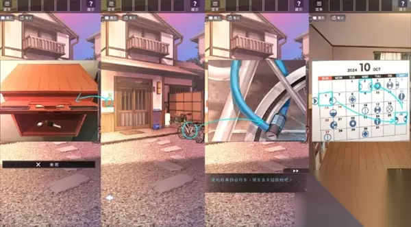随后使用自行车前往车站,完成对话后回到客厅,通过日历提示解锁桌面上的盒子。