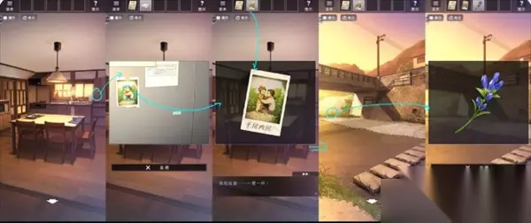回到客厅,从冰箱门上拿到照片并与碎片拼合,解锁场景川内川(神社左侧),在对岸地面上取得龙胆花。