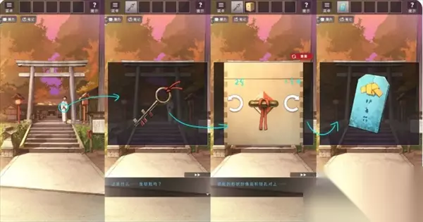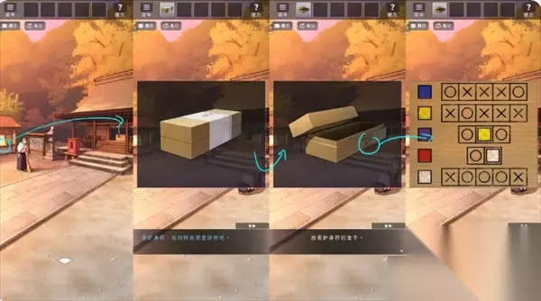 之后与神主对话获得箱子,在箱子上查看提示并排好护身符。