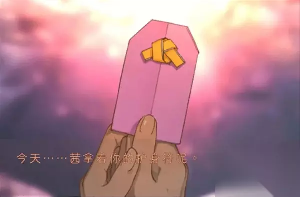 在拿到蓝色的护身符之后,将蓝色护身符交给在客厅的妈妈获得粉色护身符;随后将福纸再次前往后山泡水,得到新提示,依照提示分别在两张纸上选出相对应的字填入空白护身符,达成真结局。