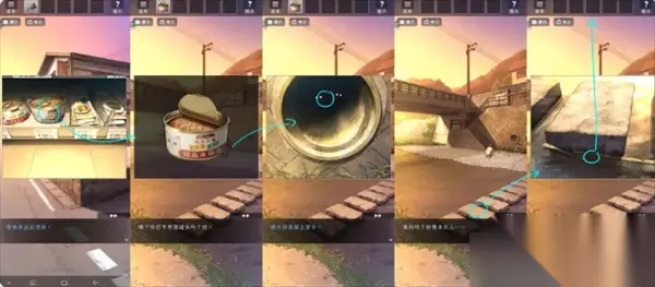 在街道处查看自动售货机,获得绳子并与木棍组合,回到水管处拿到破损的包装袋。