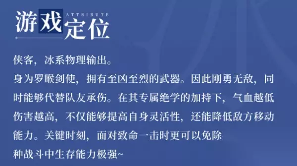 烈壹 [被动]若自身气血大于等于目标,则「对战时」物攻提高10%,且主动普攻触发「追击」(物攻*0.5) 神壹 「被动」代替相邻1格内友方角色承受物攻。 「主动」护卫范围提高为2格,并施加「屏障」「抢占先机」状态,持续2回合。 「屏障」:所有免伤提高20%,免疫所有负面状态(受到伤害,则战后消失) 「抢占先机」:若目标身上拥有「迟缓」或「冻足」状态,则必定触发「先攻」 魂壹 「被动」若自身气血低于70%,则物攻,物防提高10%。 烈肆 向前穿刺,对范围内所有敌人造成0.8倍伤害,施加「迟缓」状态,持续2回合。自身落在绝学射程最远可到达的格子上。使用后切换为「冰华连斩」 「迟缓」:移动力降低1,无法护卫 烈柒 神伍 [被动]本回合主动发起对战,战后自身恢复气血(本次伤害*0.3)。反之,行动结束时自身获得「起势」状态,持续1回合。 「起势」:所有伤害提高10%,移动力提高1格,并获得轻功能力 烈柒 魂伍 对范围内所有敌人造成0.6倍伤害,自身气血越低伤害越高(每损失1%,伤害提高1%,最多50%)。施加「迟缓」状态,持续2回合。若目标存在「迟缓」状态则将其转化为「冻足」,持续1回合。 「迟缓」:移动力降低1,无法护卫 「冻足」:无法移动,闪避,护卫 烈拾 攻击单个敌人,造成1.6倍伤害,物穿提高10%,「对战前」驱散目标3个「有益状态」,施加「封咒」和「冻足」状态,持续1回合。 「封咒」:无法使用主动绝学 「冻足」:无法移动,闪避,护卫 *游戏介绍 超绝国风奇幻武侠RPG《天地劫:幽城再临》手游正式推出,紫龙游戏继《梦幻模拟战》后又一力作!主机级画质犹如观看一场剧场版3D动漫大作;游戏剧情扣人心弦,如看电影般过瘾;亲身挑战超巨型BOSS,感受一下什么是拳拳到肉!超过数百个随机事件,展现一个活灵活现的江湖;不喜欢无脑打架?那就在地形影响、连击协同等多样战略的武林战场上寻求智取之道吧。 江湖儿女风姿百态 任你邀约 手游是该系列在移动平台的首部作品,紫龙游戏旗下BlackJack工作室继《梦幻模拟战》后又一力作!第一次将历代角色汇聚在同一完整大世界之中,并完整高清还原系列三部曲,同时忠于原作进行了全新的故事线创作以及新角色塑造,国产武侠巅峰神作焕然新生! 情节扣人心弦 如看电影般过瘾 主机级别画面品质,配以大量电影式叙事方法创作,让剧情展现得更加感动人心。盛邀国际知名音乐人,曾为《火影忍者》等人气作品编曲的尺八大师佐藤康夫以及配乐大师梅林茂进行全新音乐创作,同时高清重制了原作中《战阵》《神威》《险恶》等经典BGM片段!打造你从未想象的江湖,感受且须饮琼液,一剑破三千的快意恩仇。 实时联机 与真实好友协力闯关 花样关卡设计,包含追捕通缉要犯、一夫当关守护城池、万军丛中突围等数十种通关方式,留心地图上的小细节,甚至还能解锁迷之挑战关卡!通过指定人物组合能够产生独特阵法效果,作战效率事半功倍!独行江湖太累,不妨邀请好友一同闯关,胜友如云亦是大侠之道! 战场之中不仅要考虑冰火雷光暗属性相克法则,还可观察并利用关卡内地形特点,合理布局会让自己在战斗之中占尽先机,更有连击、追击、闪避、先攻多种体系战术,将“轻功”等武侠元素化为战场制敌手段,策略性拉满! 巨大形BOSS 挑战身临其境 原作离火神诀、九天神雷等经典咒术绝学重现,感受映 画级全屏幕战斗!最新加入超巨型BOSS挑战关卡,体型占据战斗场景一半以上空间,多重方位同时进攻,体验超大魄力战斗演出效果! 随机事件 让江湖活灵活现 游戏内置庞大数量的不可重复支线,每一次选择都会影响玩家故事的最终结局走向。少侠的旅途将会走遍中原与西域的每一寸土地,若是累了,亦可驻足扎营升起篝火,与营地中休憩的角色们促膝长谈;轻点对话气泡,还可以听她说一段有关她的趣闻轶事。最新开放的“梦境怪谈”玩法,能让你在甜美入梦之时,感受下变身夜魑、巨蝎等各式怪物的奇妙体验。 以上就是《天地劫手游冰璃技能怎么样 天地劫幽城再临冰璃值得培养吗》详情,更多天地劫幽城再临,尽在233乐园手游网。 .tstar0,.tstar1,.tstar2,.tstar3,.tstar4,.tstar5{background:url(https://www.paopaoche.net/sk13/images/azstar.png) no-repeat;width:103px;height:18px;display:inline-block;text-align:left}.tstar1{background-position:0 -36px;}.tstar2{background-position:0 -72px;}.tstar3{background-position:0 -108px;}.tstar4{background-position:0 -144px;}.tstar5{background-position:0 -180px;}