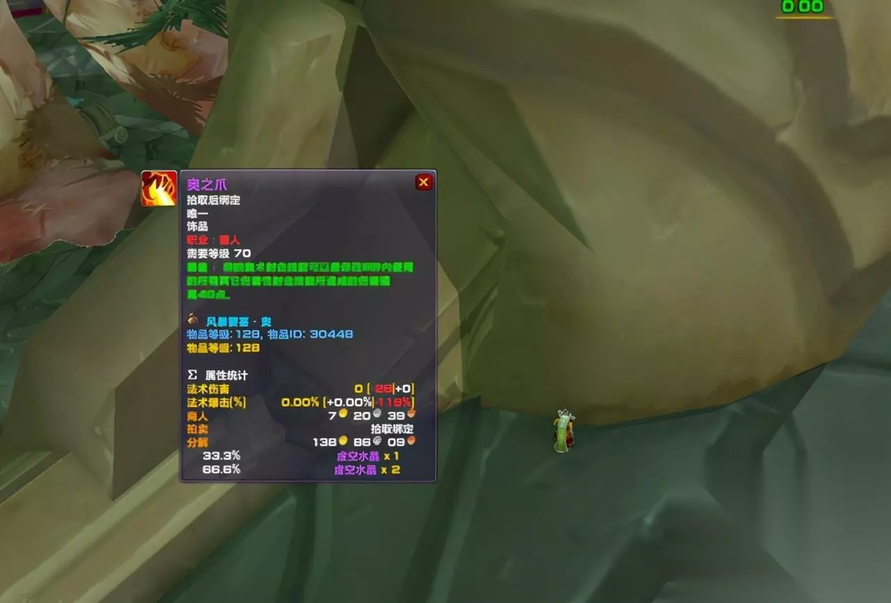 熊形态可以获得4070点护甲值;猫形态可以获得64点力量;树形态可以获得175点治疗效果;鸟形态可以获得209点法强。一种饰品兼顾四种玩法,即便是收益没有那么高,也是非常值得入手的。 术士饰品价值较低