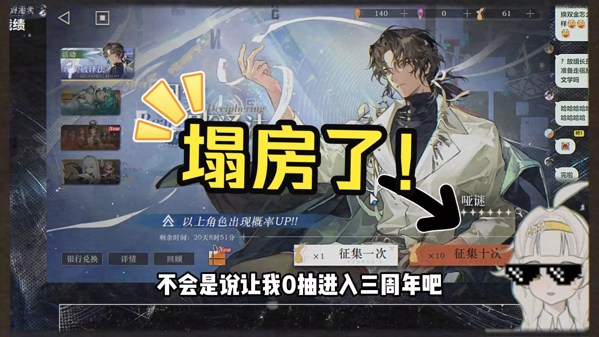 玩家在课上进行游戏抽卡,50抽后终于将心仪角色哑谜抽至满配,还抽到马库斯、芭卡洛儿等角色,玩家自1.7入坑就喜欢哑谜,此次抽卡十分激动。
