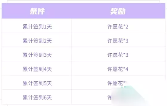 收集活动: 1、累计签到 通过累计签到总共可获得许愿花*20