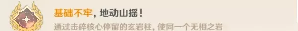 三、基础不牢地动山摇 通过击碎核心停留的玄岩柱,使同一个无相之岩落地三次,看无相之岩在哪个柱子上面就去打哪个柱子,带大剑角色击落三次即可解锁成就。 攻略详情>>>基础不牢地动山摇成就解锁条件