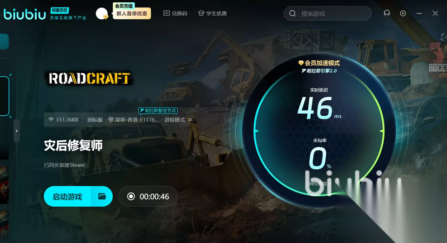动态地形变化(如道路铺设、废墟清理)需实时同步数据,如果再加上动态天气系统的加载,就更加容易卡顿掉帧了,而掉线很可能导致任务失败,尤其是起重机吊装、车队运输等需精准配合的操作。高延迟也会导致画面不同步或操作失效。这种情况建议用上biubiu加速器,它智能匹配最优节点(如欧美、日韩专线),将联机延迟压至50ms以下,确保起重机吊装、车队运输等操作实时同步。