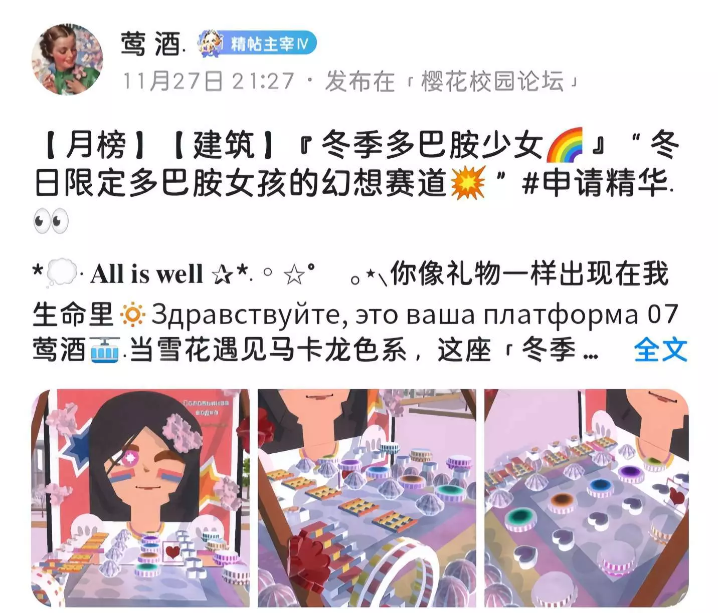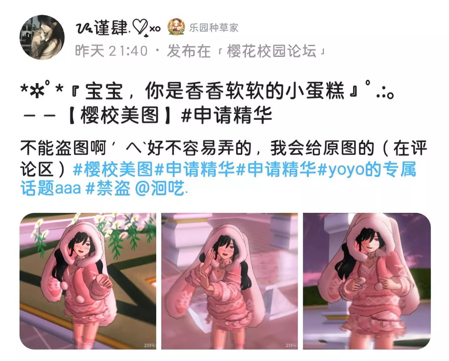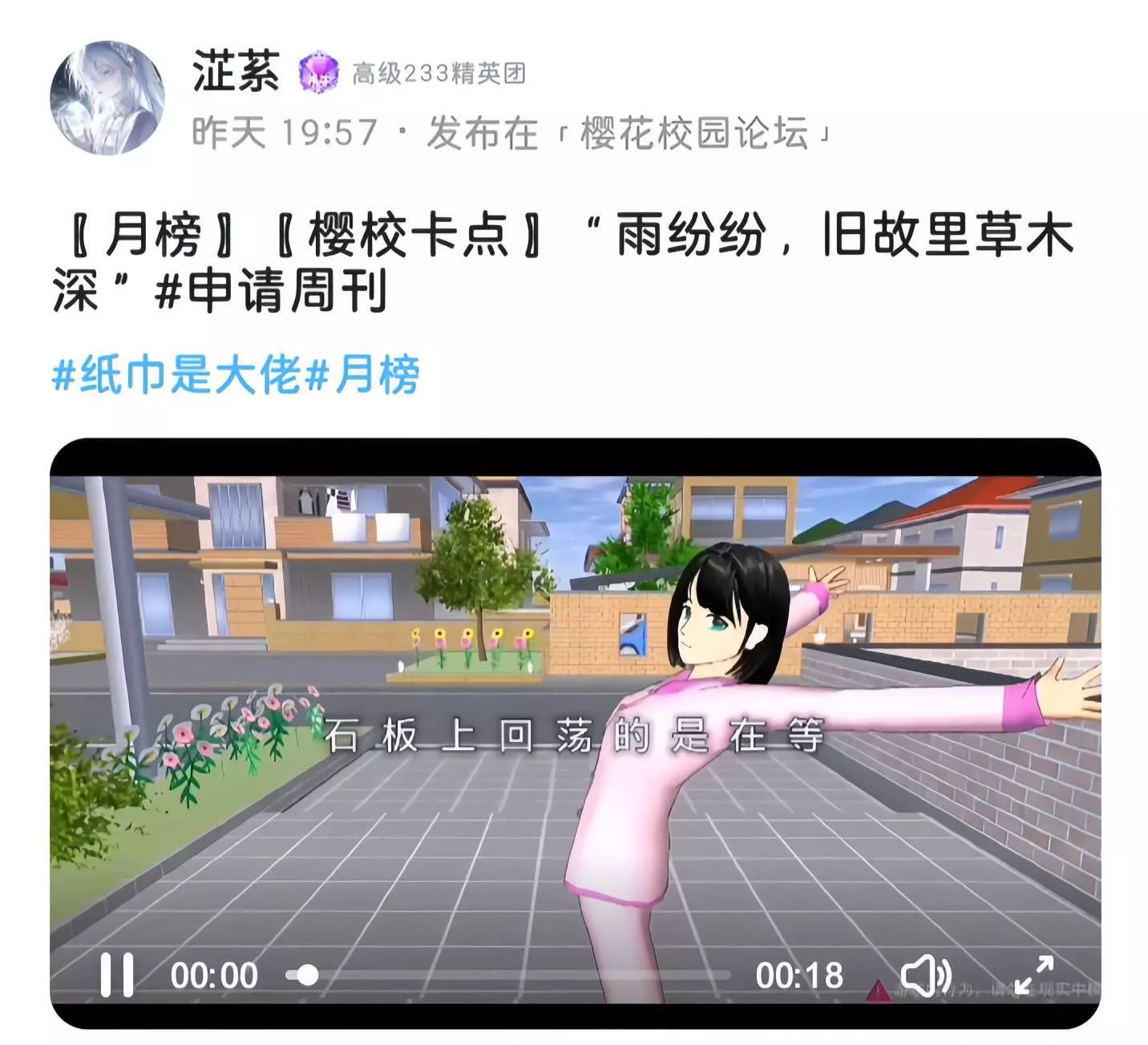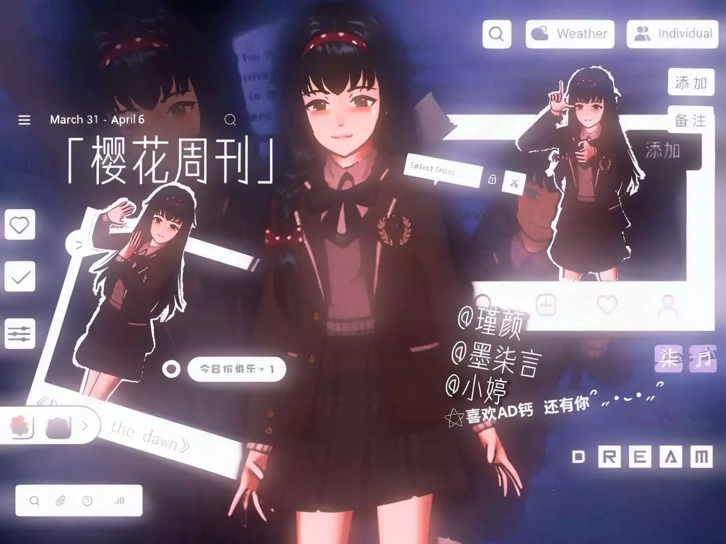 新一期周刊带着满满的元气与惊喜和大家见面啦!小伙伴们在本周内创作了许多优质的作品,有玩家们脑洞大开的建筑、氛围感拉满的美图,唯美感爆棚的卡点,锦上添花的绘画,每一份作品都藏着对游戏的热爱~接下来跟随小婷的脚步,一起探索樱花校园的新鲜事,感受游戏圈内的温暖与活力吧!