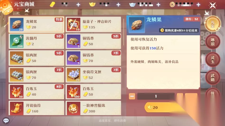 面对屏幕上各种要买的,以及需要领取的任务,手足无措。好不容易攒好的银两、各种物资,不知道什么时候就“浪费掉了”,更是心疼不已。尤其是作为三卡党,在投入的时候更是要精打细算。 商城
