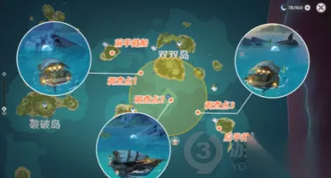 将两块木板上的内容联系起来,我们终于得知:这些人是从稻妻出来的,在路上不幸遭遇了海难,生死未卜。这个时候派蒙会提醒我们寻找宝物。一共三个调查点,但是范围非常大,具体的位置如下