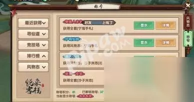 排行榜称号 游戏中会有各个排行榜,只要玩家榜上有名,就可以获得排行榜中的称号了,在获取的时候,还可以通过做各种的任务来获得称号,战斗力、财富、重伤等几方面的因素,都是必不可少的要求,所以排行榜称号比较看综合属性。 风物志称号 最后一个就是风物志的称号了,只要玩家收集齐了这里面的材料,就可以获得对应的风物志称号了。