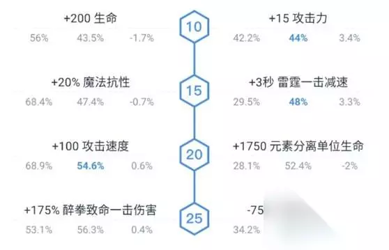 天赋加点和出装思路考虑到我们是中单的攻略,因此天赋追求的是极致输出。10级点攻击力,15级点右边加强控制,20级点攻速,25级抛弃香饽饽大招cd,而是选择3技能伤害!加175%的伤害实在太香,因为现在酒仙的3技能暴击概率基本白给,到了25基本上两棍子下去一个脆皮就没了,这套天赋也是我们中单暴力酒仙的核心。