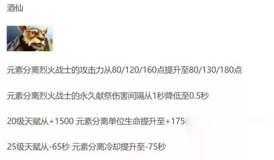而在7.25,酒仙更是得到了小幅度提升,分身的增强看似鸡肋,然而25级的天赋点完大招的cd就变成了0,熊猫的分身近乎永动!有人可能会说,大招永动又如何,到后期还不是吹风怪?小miu讲的只是酒仙到后期的存活能力,在这个普遍看重前期打架,线优转压制的版本,酒仙更强的还是在前期对线以及抓单能力上,而追求节奏中单就是一个最好的位置,可以说酒仙在这个版本更适合打中。