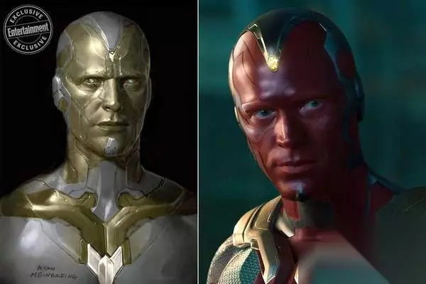 幻视最初也有一系列金灰色搭配的皮肤涂装,据介绍这款幻视肤色差点就被采用通过,后来制片人们还是决定选择更加经典的红色金色搭配。与幻视有类似遭遇的角色还包括《银河护卫队》系列绿皮肤的卡魔拉,她差点以紫色皮肤亮相。