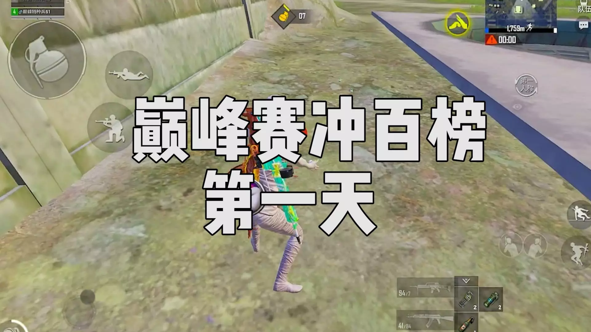 这是《和平精英》巅峰赛的游戏内容,展示了玩家跳伞落地、在房区观察敌人、与队友配合战斗的过程,还调侃自己是“双枪老登”,呈现了巅峰赛里的趣味对战场景。