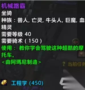 在魔兽世界怀旧服中,机械路霸是一辆双人坐骑摩托,很多玩家觉得好看拉风想获得它,那么魔兽世界怀旧服机械路霸怎么获得?想拿到机械路霸坐骑的玩家,快来看看魔兽世界怀旧服机械路霸获取方法吧。