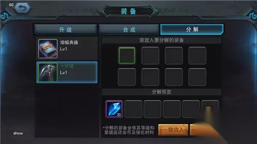 4、手速不够快,点击技能选择方向手忙脚乱?试试双击技能,以英雄为中心快速施放。 5、利用英雄切换CD无限施放技能,因为某些技能是持续性的,因此当技能结束,英雄的切换CD也差不多快走完了。 6、进入副本,小怪战时使用挂机,英雄行动会更快;打完以后别让英雄去捡道具,手动行进至下一个怪区,再挂机打怪。这样3星通关副本并不难。 7、通关第一个大地图可以获得巫女,等级达到35级可以获得剑豪。 8、缺技能书、缺金币、缺符文都可以去战争学院。 9、大量白色、绿色装备留下一两件,其他果断到装备面板中分解,获得装备强化石。