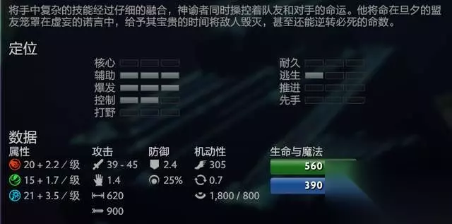 笔者是一头5k左右的野猪,神谕的场数和分数也没有那么的有说服力。在之前3k左右的时候曾经经常使用这个英雄,但是胜率着实不佳,现在反思觉得这名英雄还是一个非常具有针对性的英雄,而此篇攻略也将从技能分析其合理的阵容,知己知彼,分析什么时候点出神谕者合理以及配合的阵容,在选择的时候,就要发挥其最大的作用。 1.英雄概述 作为一名非多操英雄,神谕者的出场率却非常的低,混于育母蜘蛛与地卜师之间,而胜率也同样是惨不忍睹,是一个名副其实的冷门英雄。但是却明显的可以看到,神谕者从低分到高分局的胜率是一直在提升的,甚至超凡局达到了51.4%的胜率。说起其原因,笔者认为是因为神谕者是为数不多的两面性英雄,如果操作不慎,非常可能限制队友的输出,或者救下可以击杀的敌人。也因此,神谕者这个看起来操作没有那么繁琐的英雄,成为了Dota中仅13位操作难度三颗星的英雄之一。
