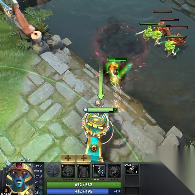 而这个技能的另外一个用法则是在3级拥有两级的时候,可以给远程兵施放于反补线之下,然后再将其反补,功效类似于巫妖或者谜团。