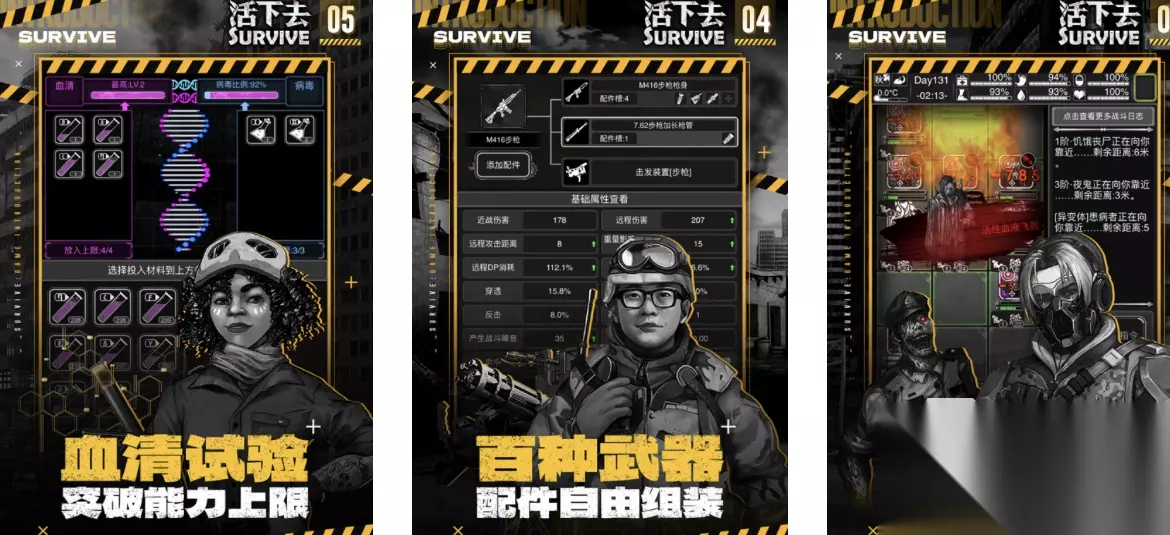 颜色饱和度饱满的末日废土风给予玩家真实的末日逃生体验,玩家需要面临的两大危险是僵尸和不断恶化的生化危机。玩家活下去的第一步就是搜索物资,玩家操控左下角按钮更改视野角度,操控右下角三个按钮发动手脚技能对抗可能存在的风险,在有一定的体力之后就可以进行建造避难所,它需要防止大型不明生物的攻击。 高速下载 普通下载 优先233乐园APP下载 3、《活下去》