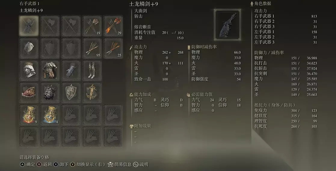 武器选择上,亵渎圣剑是力信流的核心,战技自带回血效果,推图和打BOSS都很省心。早期用黄金戟过渡,拿到亵渎圣剑后强化到+10,配合黄金树大盾能抗能打。祷告推荐黄金树恩惠和雷电护体,开战前上好BUFF,身上闪五颜六色的光基本就稳了。如果想玩得更灵活,备一把夜与火之剑,火抗怪用激光炮,普通怪直接砍,但要注意直剑削韧较低的问题。