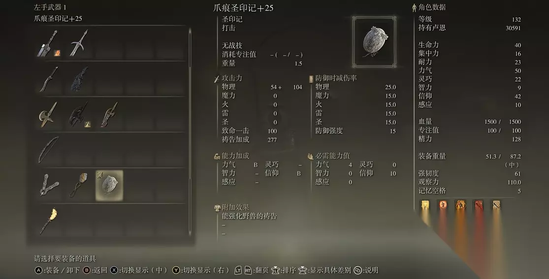 大壶护符提升负重,方便穿重甲;群聚信徒立誓布增加祷告威力;古王护符延长BUFF时间;最后一个格子可选卡利亚勋章减少战技消耗。如果觉得蓝条不够用,可以带祖灵角,战技命中回蓝还能顺便回血。这套配置让小伙伴在战场上既能硬刚又能续航,面对多动症BOSS也不慌。