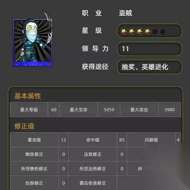 核心橙卡分析: 盗贼: 全能型输出,流血、刺杀技能强力,敏捷高,控制能力出色。