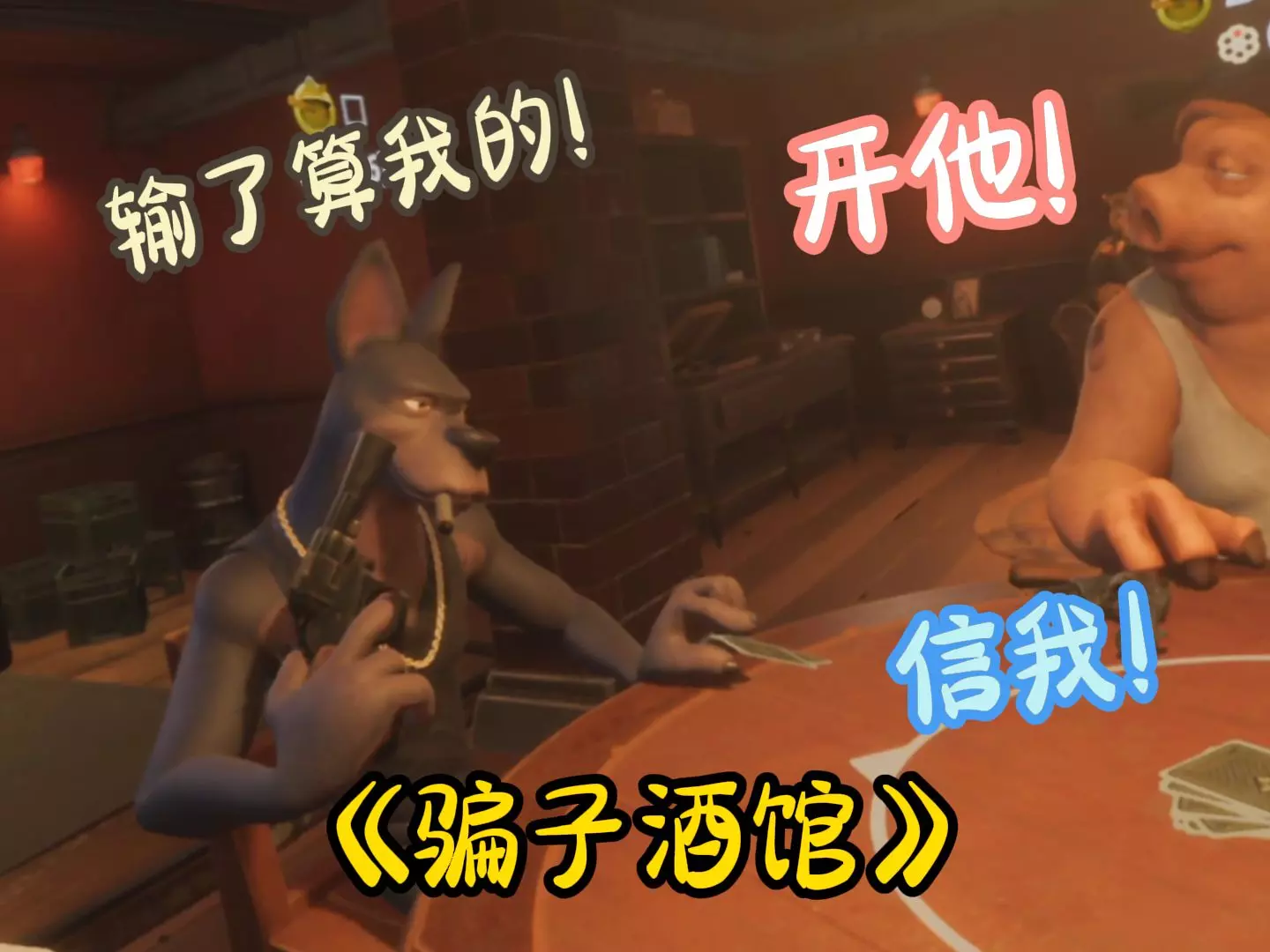 这是主机游戏《Liars bar》(骗子酒馆)的游戏画面展示,这是一款带有博弈、欺诈玩法的单机游戏,玩家在游戏里和拟人化动物角色进行卡牌对局,过程充满趣味与策略性。