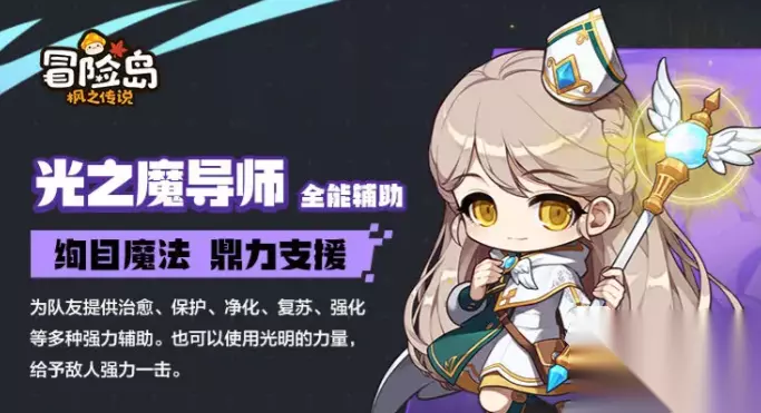 该职业还是非常不错的一个建议,新手开荒的职业。上手难度不高,而且本身也拥有着相当不错的机动性,使得新手玩家朋友们只要在较远距离就可以对敌人造成非常恐怖的杀伤效果。打本打关卡来说,非常的简单。而且角色本身范围技能优秀,加上非常不错的攻击加成,也是后期的强势职业之一,建议优先选择。 4、光之魔导师 游戏当中少有的全能型辅助职业,还附带法师的效果。其攻击方式为魔法属性用的武器,也是魔法短暂职业群定位类似于魔法师,但实际使用情况下,更加偏向于辅助的牧师。本身输出能力不佳,主要靠的是一手辅助加持效果以及生存能力,可以为队友提供一切所有的支援效果。包括回血保护,净化,复活,强化等等能力,是游戏当中中后期团队副本最重要的人物。