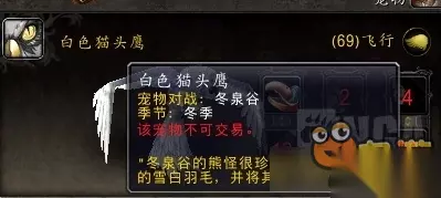 白色猫头鹰是一个季节性宠物,只在艾泽拉斯的冬季刷新。艾泽拉斯的冬季从11月份就开始了,但是白色猫头鹰是从12月21日稍晚开始刷新。