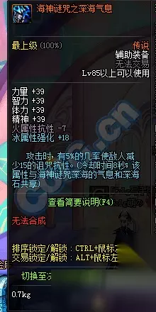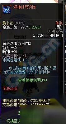 项链:火抗-7,冰强+12,攻击时有3%几率对敌人释放海神愤怒,CD1s