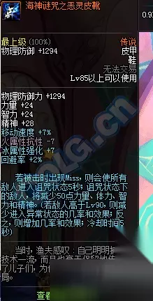 鞋子:火抗-7,冰强+7,回避+2%,若被击出现miss,则会使所有敌人进入诅咒状态5s;诅咒状态下的敌人四位-50,CD5s。(异常等级Lv90)