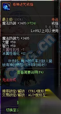 戒指:火抗-7,冰强+12,攻击时有3%几率对敌人释放海神愤怒,CD1s