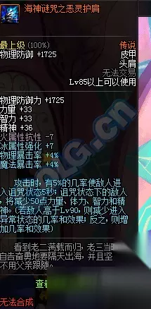 护肩:火抗-7,冰强+7,双暴+4%,攻击时5%几率使敌人进入诅咒5s;诅咒状态下的敌人四位-50。(异常等级Lv90)