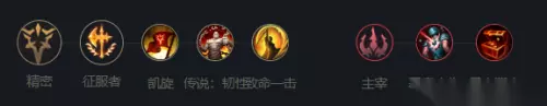 4、符文推荐:【精密+征服者+凯旋+传说:坚韧+致命一击+主宰+恶意中伤+寻宝猎人】