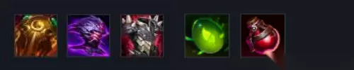 5、出装推荐:【日炎圣盾+千变者贾修+荆棘之甲+铁板靴+踏苔蜥幼苗+生命药水】