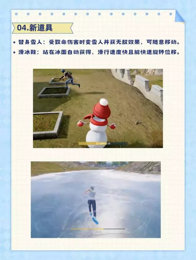 ·替身雪人:受致命伤害时变雪人并获无敌效果,可随意移动。