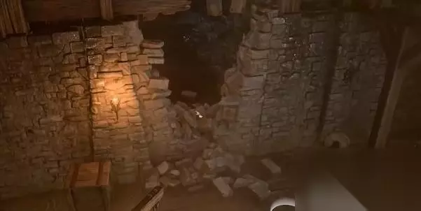 2、进入【破旧大门】后,沿着路来到一堵破旧的墙,成功进入【低语深地】。