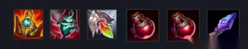 5、出装推荐:【舒瑞娅的战歌+炙热香炉+救赎+明朗之靴+窃法之刃+生命药水】