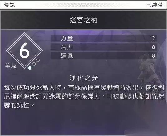 值得注意的是,宝箱中开出的迷雾回音的数量与开箱次数有关,开箱次数越多,获得的迷雾回音越多。 推荐装备 开启尼福尔海姆后,铁匠处会开出尼福尔海姆系列装备,可以提供对迷雾的抗性,增加在迷宫中探索的时间。这里我推荐两件装备,斧柄迷宫之柄和护身符赫瓦格密尔之石。