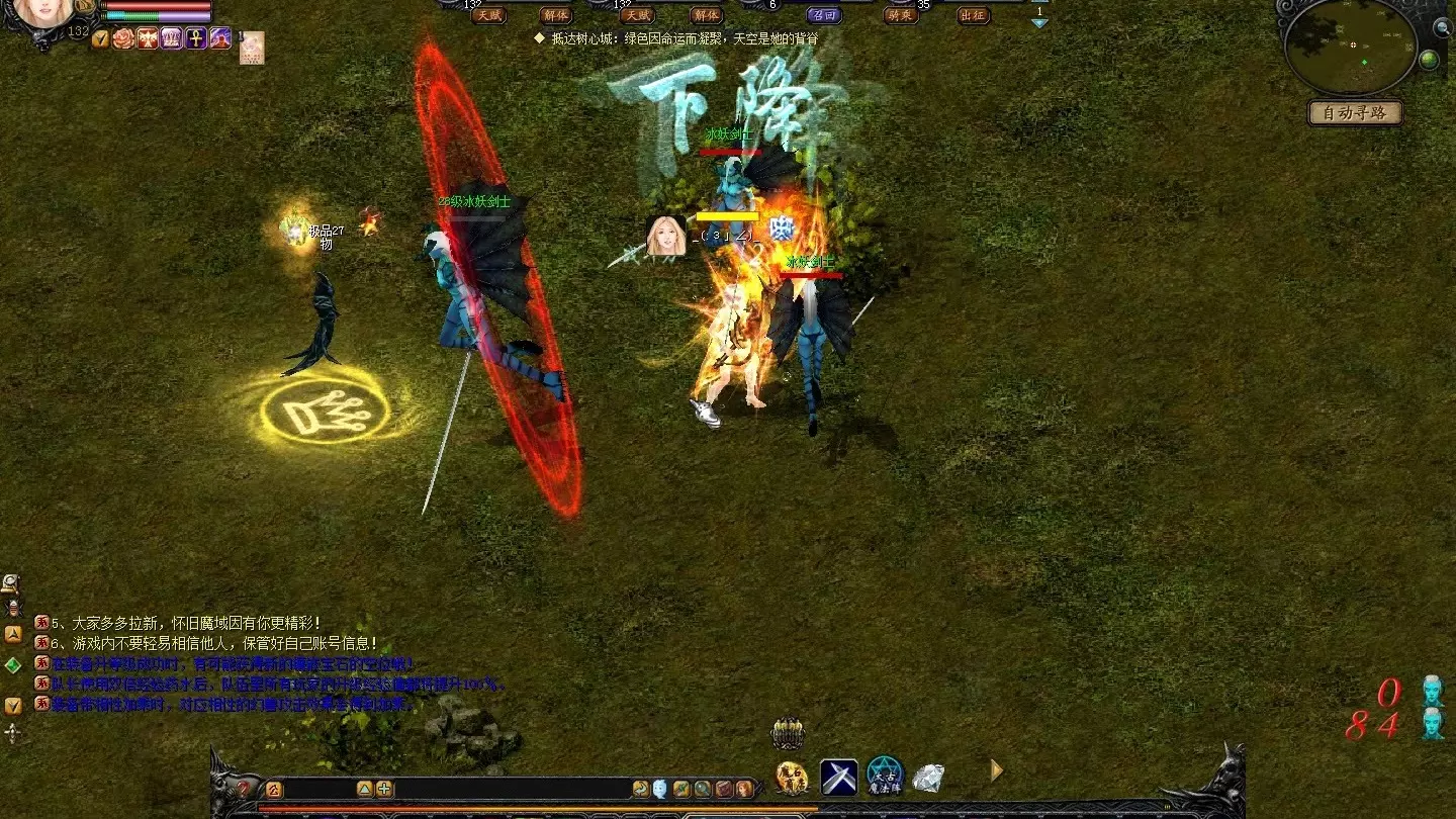 这是怀旧版《魔域》零充战士的飞升之路任务流程分享,展示了战士在飞升任务中战斗、完成任务环节的游戏画面,呈现了飞升任务里的战斗场景与相关任务交互过程。