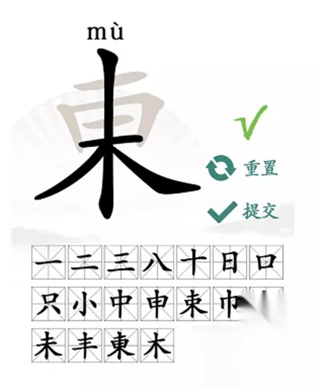 4、最后几个字也比较好找,都是经常会用到的:【末、未、丰、东、木】。