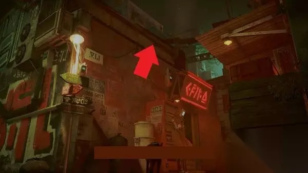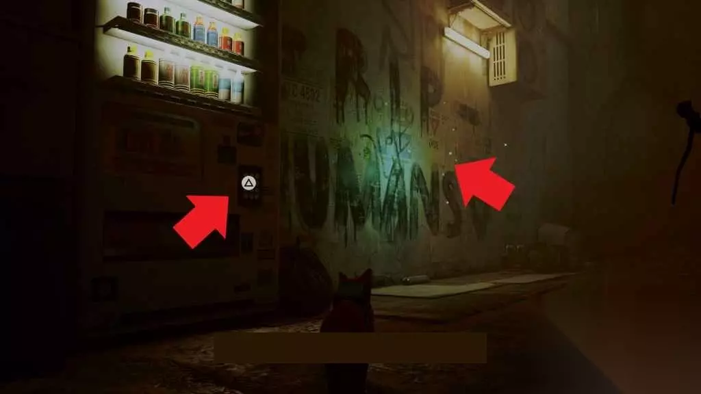 往下跳,继续沿着这条小巷走,然后向右走,到达你在本章开始时进入贫民窟的地方。在短楼梯上右转,你可以找到另一台自动售货机,在那里你可以通过与墙上的涂鸦互动获得能量饮料3,以及5/7的记忆。