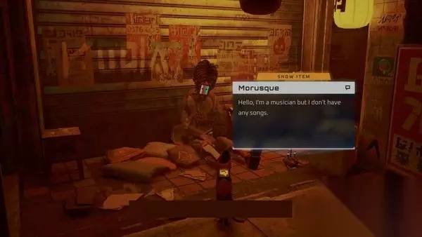 用3种能量饮料换???左侧的项目允许您选择2/7的内存。交易超级精灵洗涤剂可以让你获得电缆,这是第6章的进步项目,但你现在可以抓住它了。用你最后的能量饮料换取右边的物品,你可以获得4/8张乐谱。 现在你已经从Azooz获得了所有物品,回到酒吧。继续沿着小巷穿过它,经过坐在地上的两个机器人,直到你到达最后一个机器人,名叫奶奶。