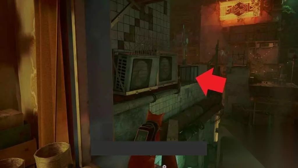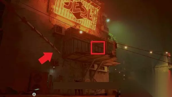 现在,你已经捡到了本章中所有不在最后一个区域的物品,因此你可以回到洗衣店的屋顶,然后你可以跳到带有大霓虹灯标志的大楼阳台上,然后跳进窗户。