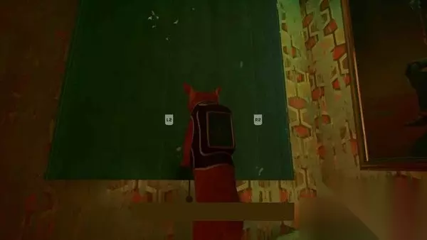 走到房间的另一边,在那里你可以与绿色窗帘互动,这样你就可以离开了。