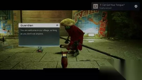 继续前行,经过摩卢斯克,你可以在地上找到一个纸袋,你可以与之互动。与它互动时,它会把它贴在你的头上,暂时反转你的动作控制,并奖励奖杯。好奇杀死了这只猫。