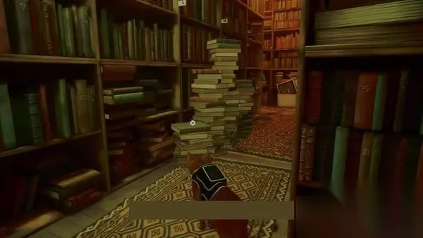 走到这个房间的后面然后右转,在那里你可以看到一堆书挡住了另一个区域。跳过它们,然后与床上的便笺交互以获取钥匙。