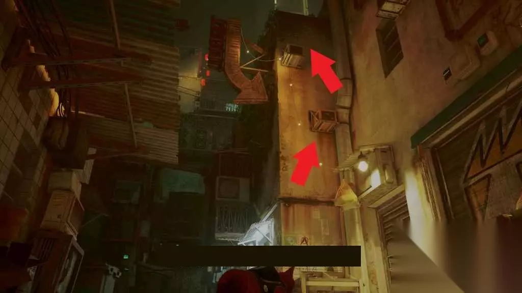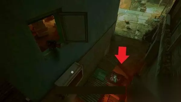 前往右侧的下一条小巷,在那里你可以跳进通向酒吧上层的窗户。