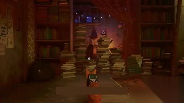 回到前面的房间,立即向左然后向右进入中间的过道,那里有更多的书。跳过去把他们撞倒,露出一个保险箱。与保险箱互动,并使用钥匙打开它,让你拿起医生的笔记本3/4。